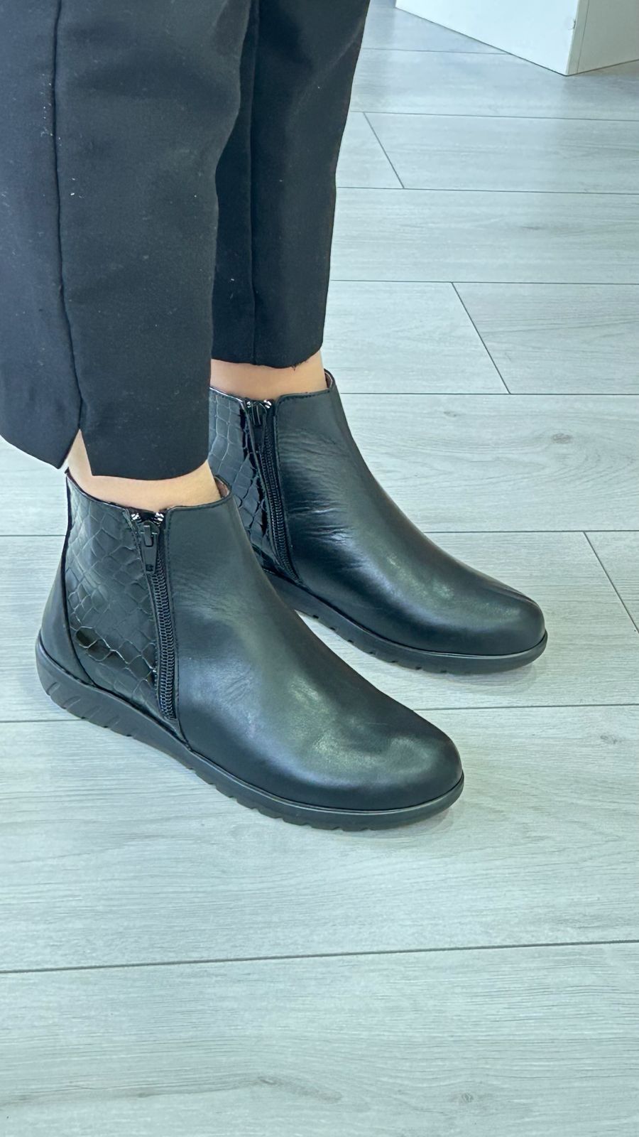 Botim Conforto Walk & Go (preto com lateral croco )