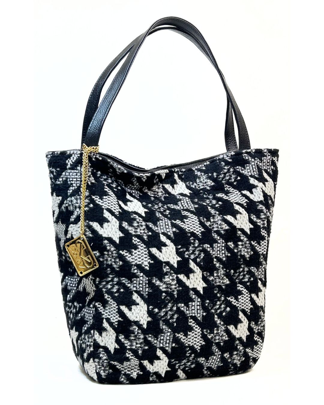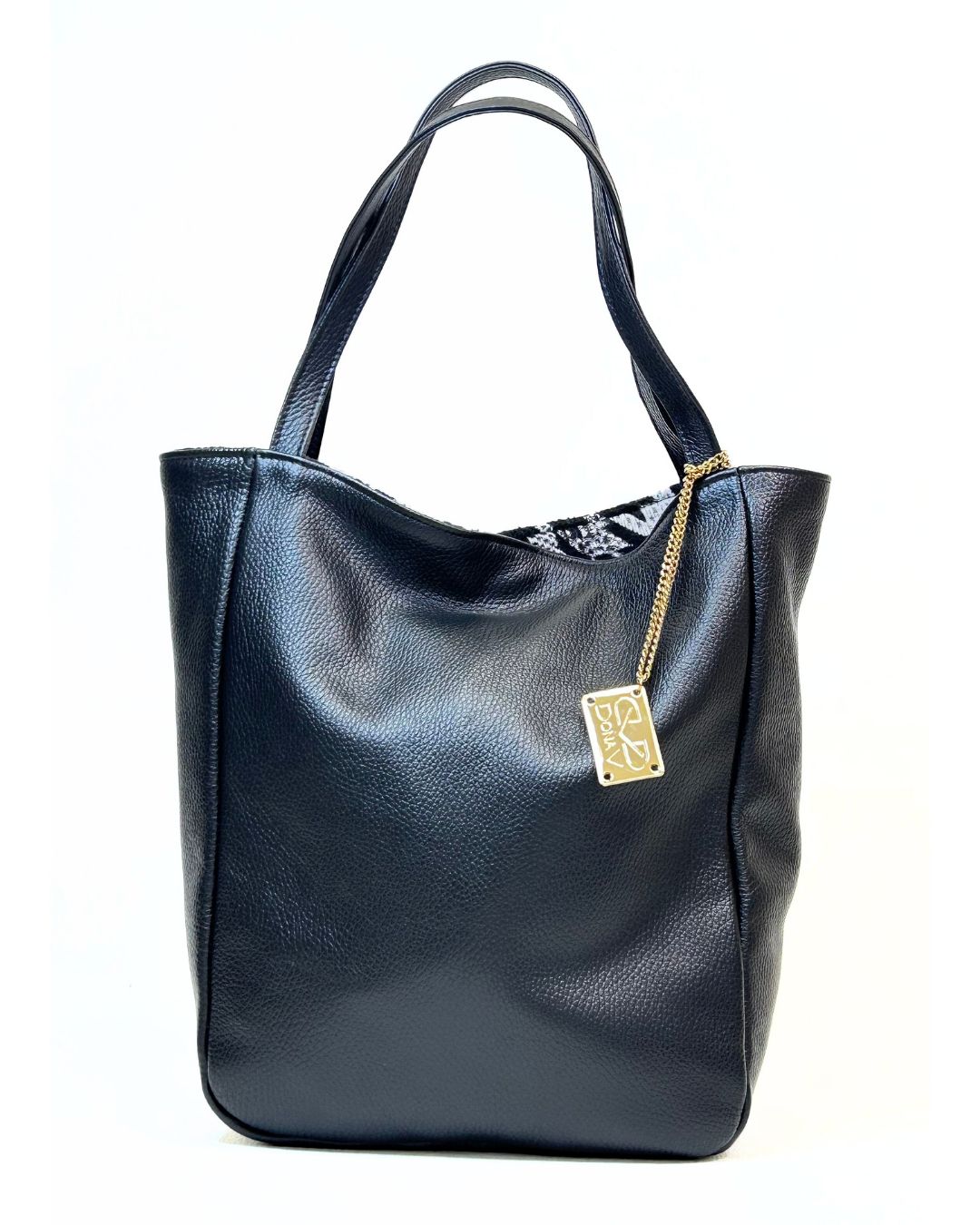 A Mala Dona V Reversível em Pele Preta é o equilíbrio perfeito entre elegância e praticidade. Com design sofisticado e textura suave em pele, adapta-se a qualquer ocasião. O interior em padrão pied-de-poule transforma-se num segundo look cheio de personalidade, duas malas num só modelo!