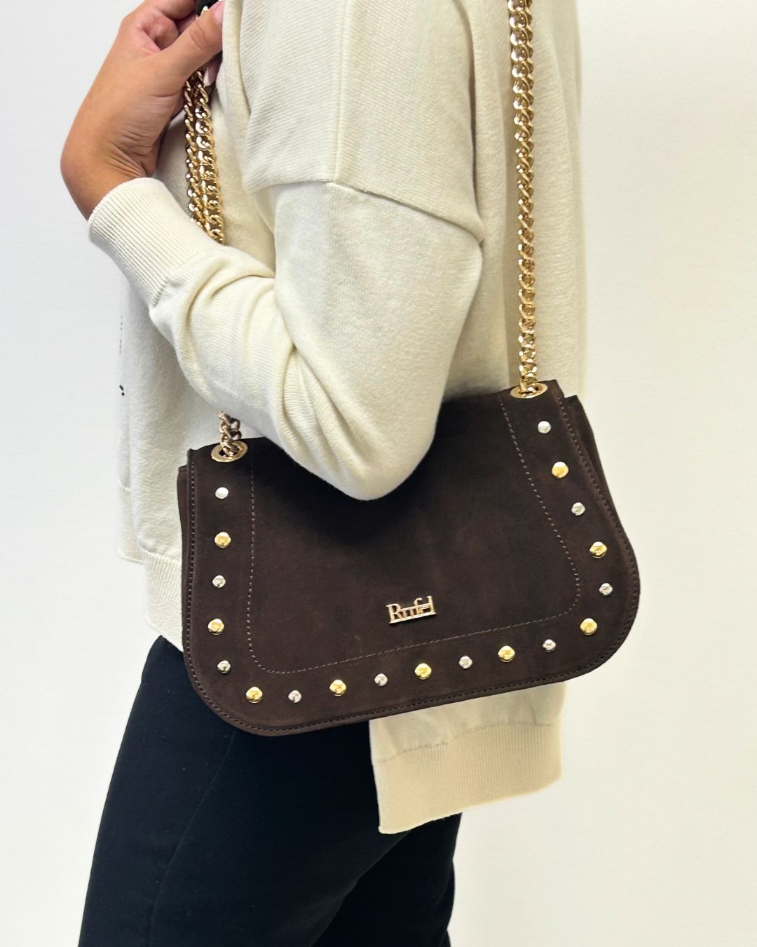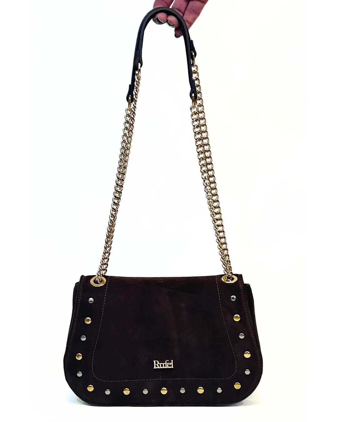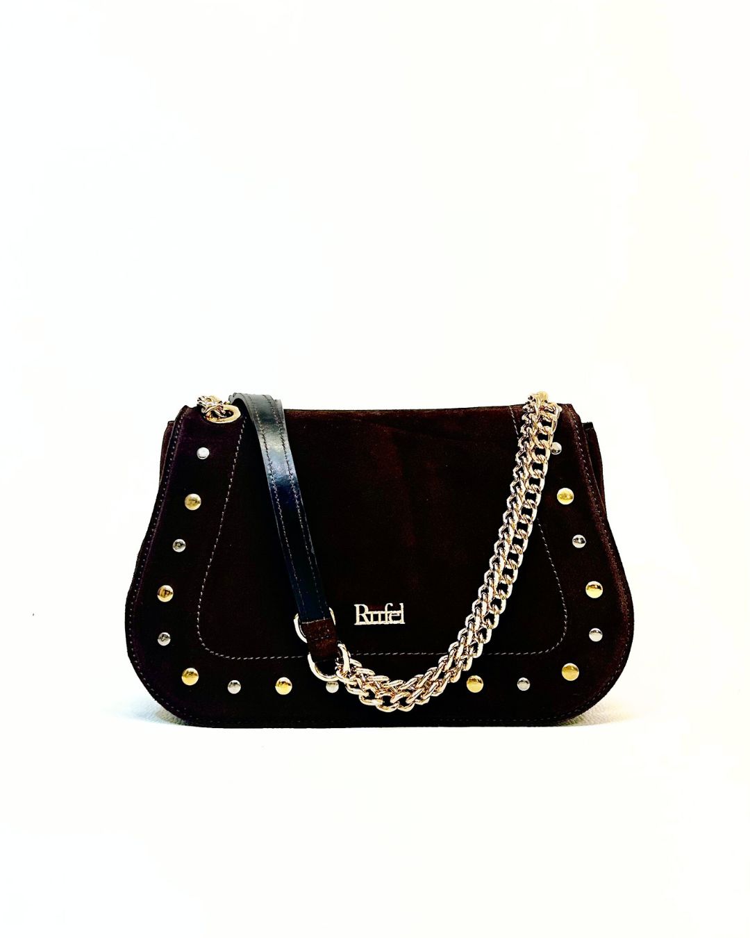 A Mala Rufel Camurça Castanha com Corrente é a combinação perfeita entre elegância e atitude.