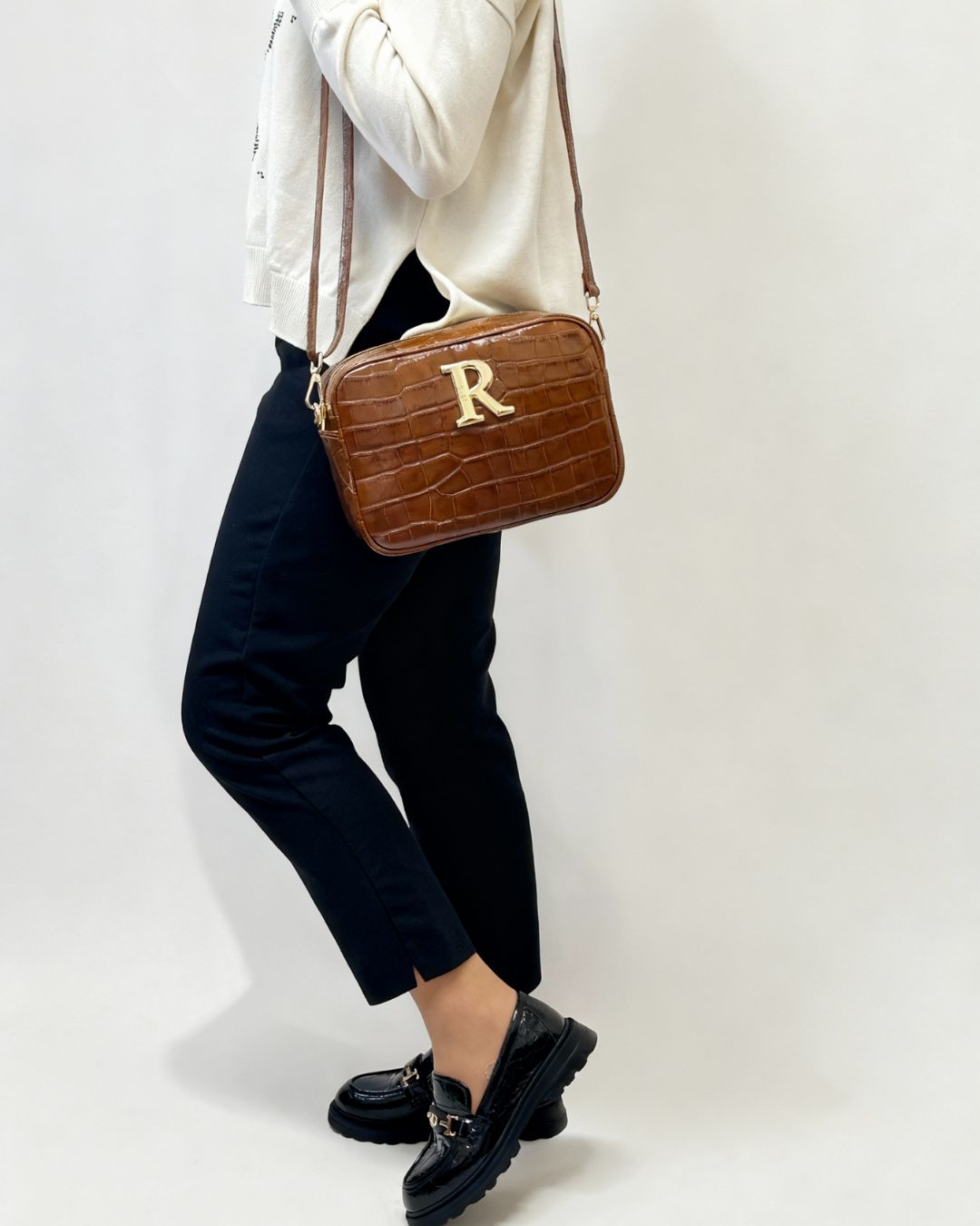 Com acabamento em pele texturizada estilo croco, apresenta o icónico “R” metálico dourado, símbolo de elegância e qualidade Rufel.