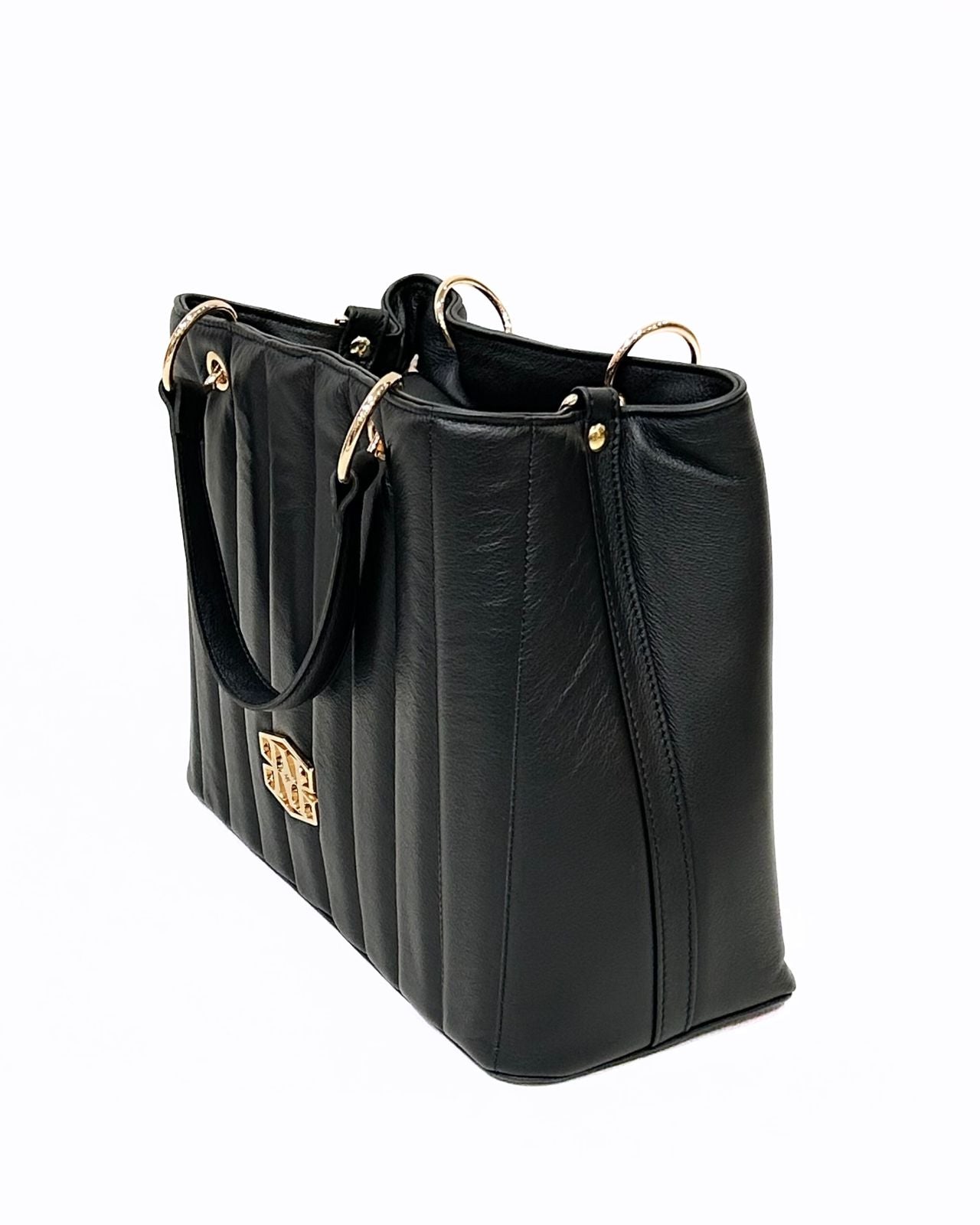 Pode ser usada na mão ou ao ombro/tiracolo, graças à alça amovível e ajustável, garantindo conforto e versatilidade no dia a dia. Com interior espaçoso e design estruturado, é ideal para quem procura uma mala prática sem perder o toque de sofisticação.