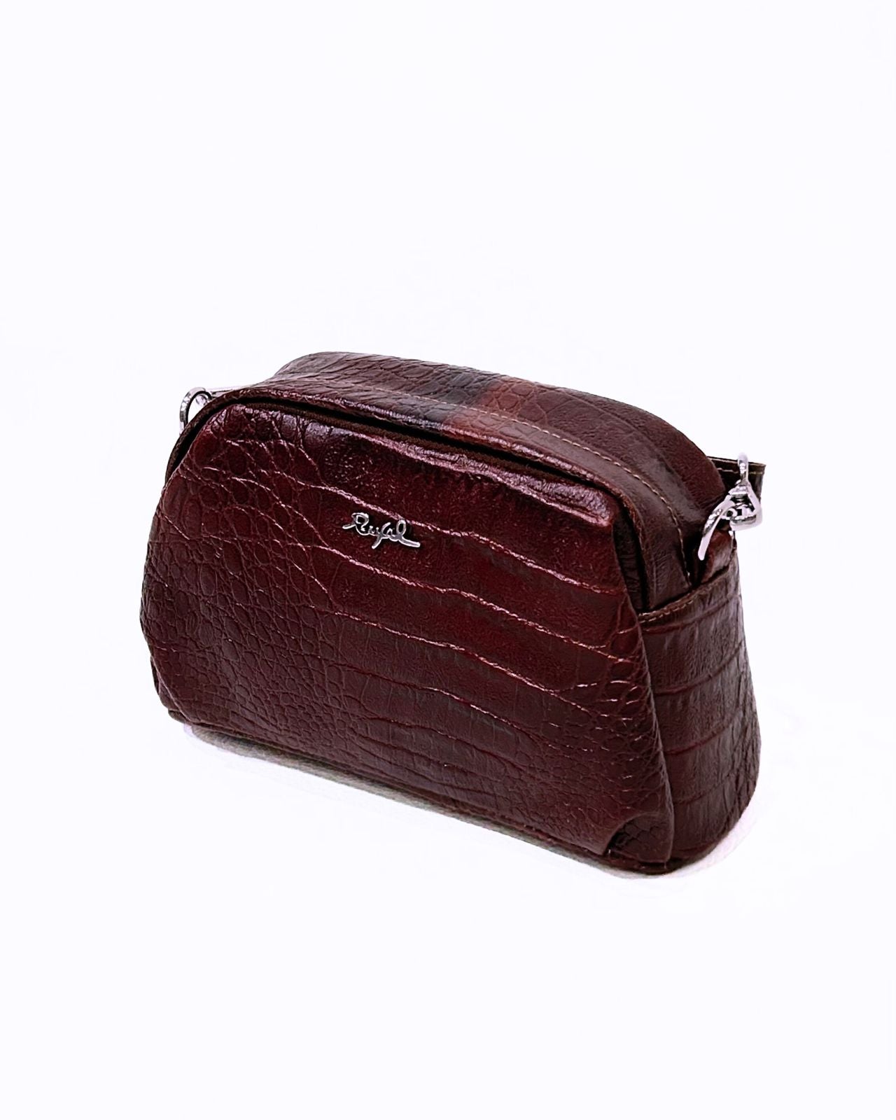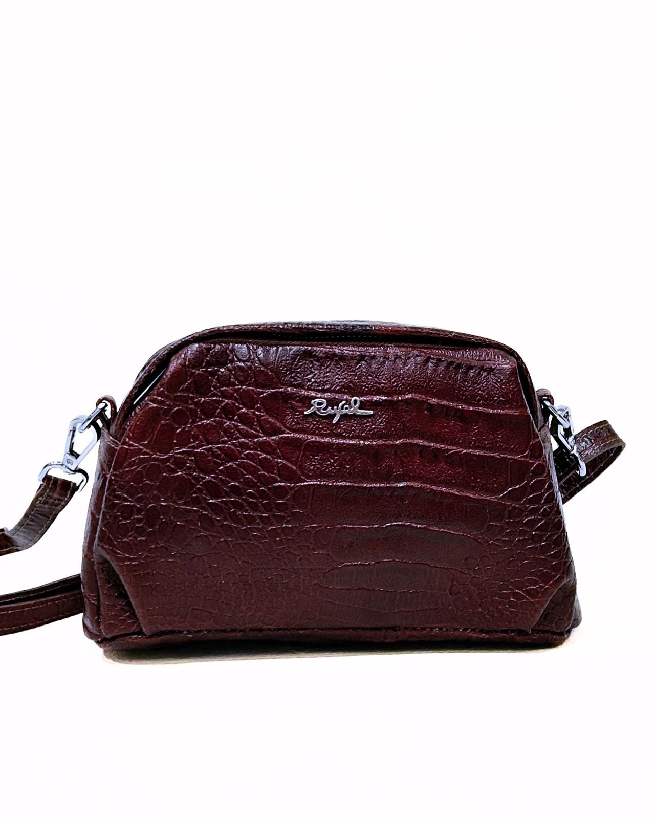 Mala Tiracolo em Pele Castanha Escura com Efeito Croco - Rufel