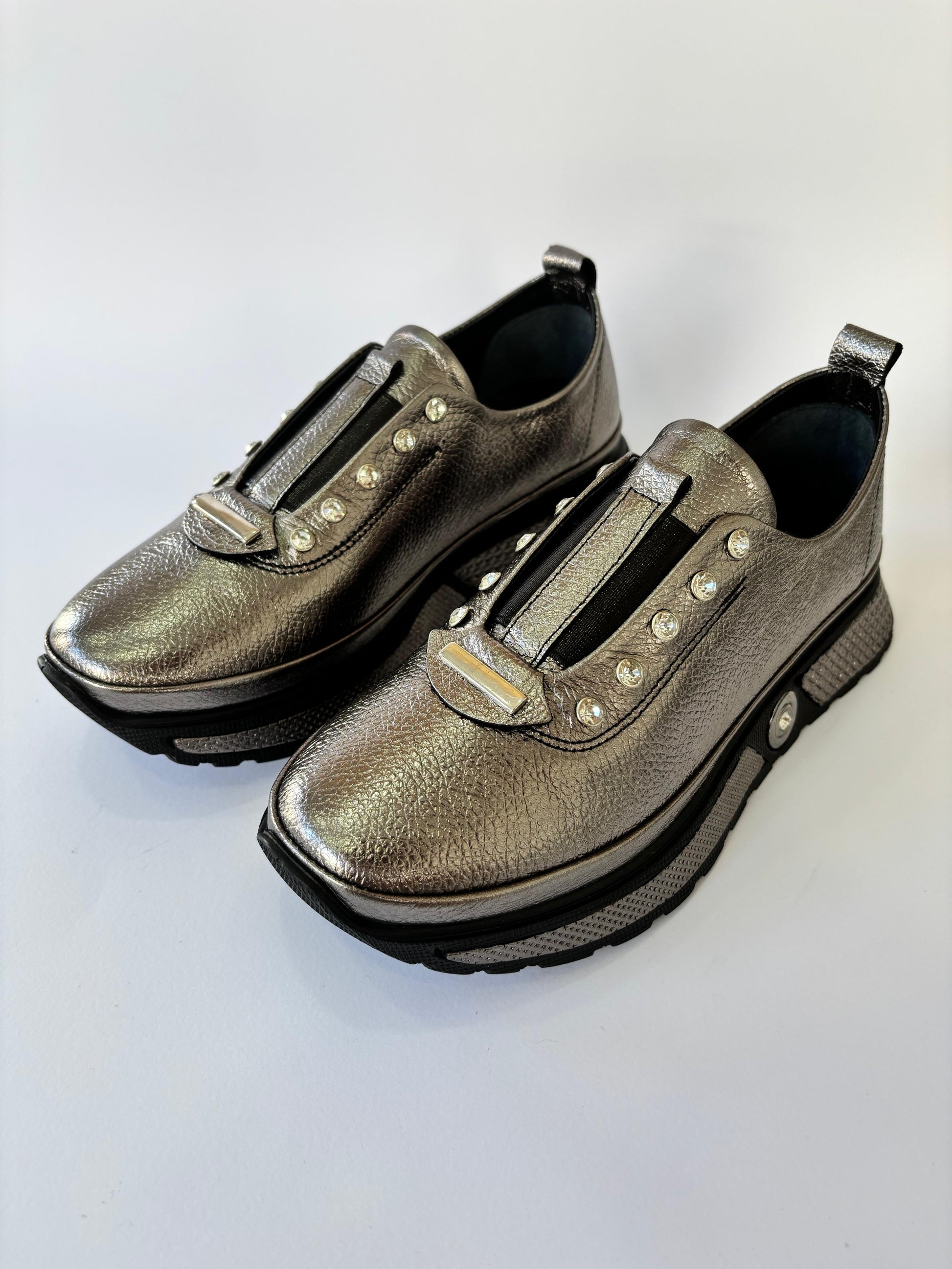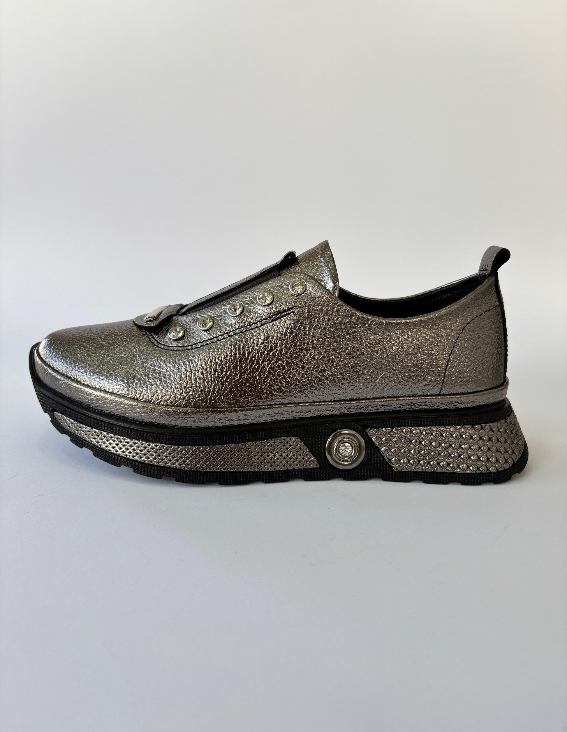 Sapatilha cinza com aplicações