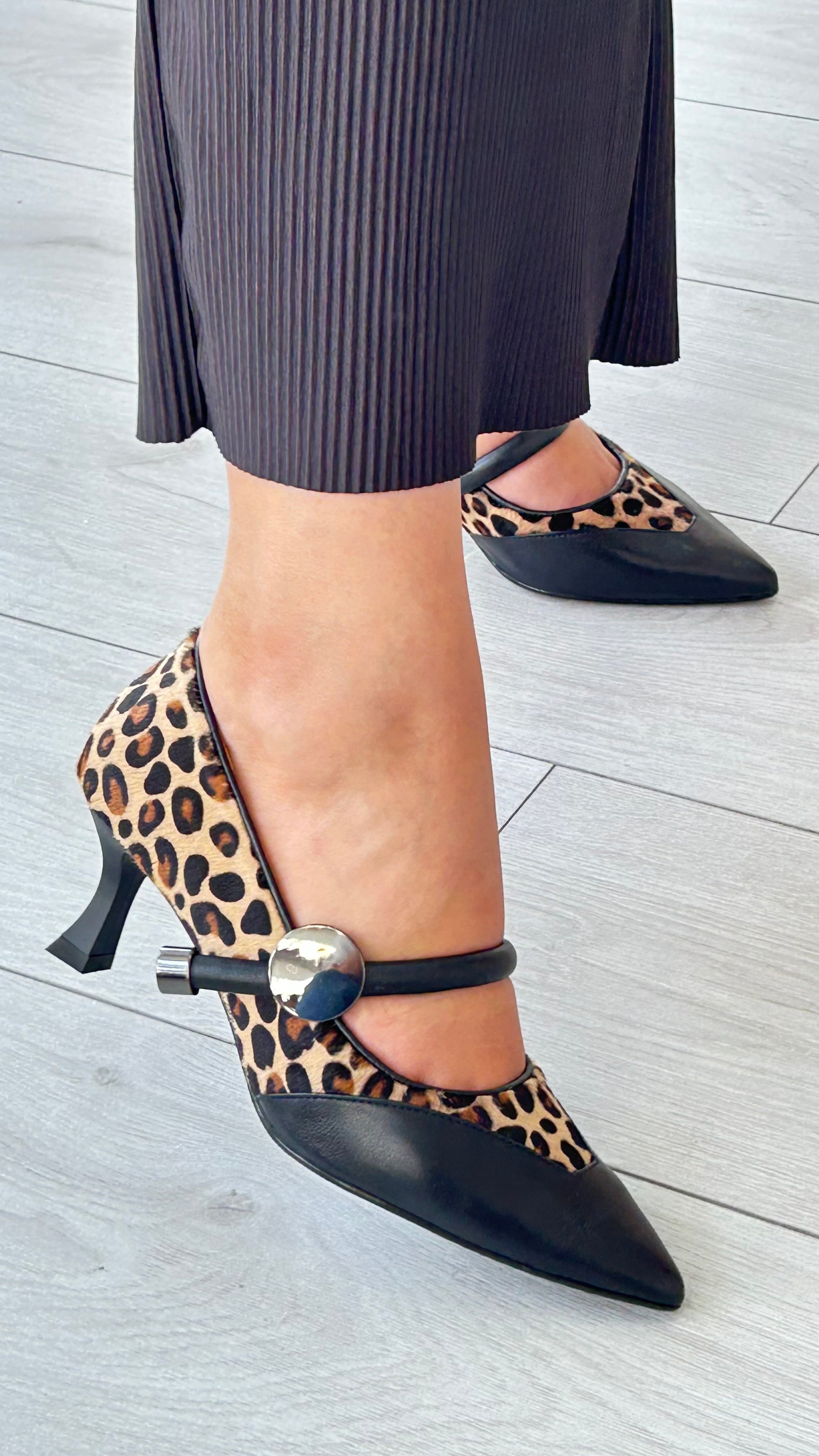 Sapato de Salto sofisticado e audaz. Eleva instantaneamente qualquer look clássico ou simples, com um toque elegante retro.